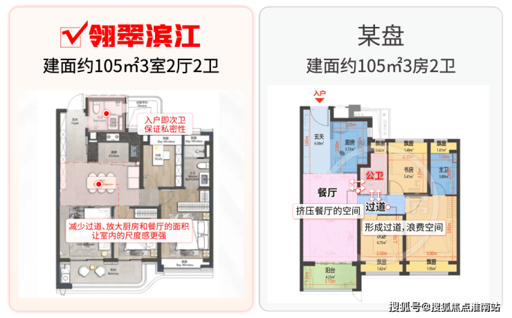 这样的站位带给翎翠滨江的优势是什么呢,我们来看一下对比: