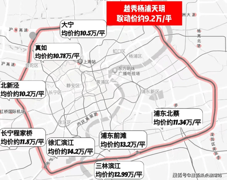 在市区,购房的门槛已经变得异常高昂。观察上海中环周边的热门区域,房价普遍攀升至 每平方米10万至13万之间。例如,大宁的新房均价已达到10.5万元,真如的新房均价约为10.78万元;徐汇滨江的房价约为14.2万元;前滩的房价约为13.2万元;北蔡的房价也已达到每平方米约11万元。对于那些渴望在中环附近置业的朋友们来说,杨浦区已成为少数几个性价比相对较高的区域之一。特别是北中环沿线附近的越秀·杨浦天玥,其均价为每平方米9.2万元,尤为引人注目。