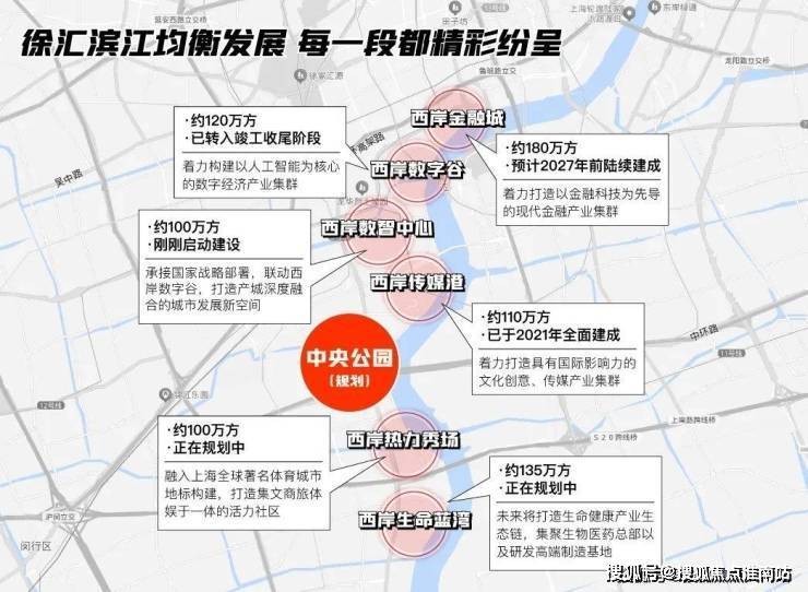 徐汇滨江热度之高,是得益于远瞻世界的战略规划,徐汇滨江打造“世界卓越水岸”,规划有百万方规划组团。徐汇滨江迄今已规划六个百万方组团, 聚焦⼀港、⼀⾕、⼀城、⼀场、⼀湾、⼀心的六个百万⽅空间布局(⻄岸⾦融城、⻄岸数字⾕、⻄岸数智中心、⻄岸传媒港、⻄岸热⼒秀场和⻄岸⽣命蓝湾),而第七大组团“中央公园”,完美覆盖海上·清和玺所在上海植物园区域,未来将无界链接城市生态资源,促进徐汇滨江与城区无界融合、兑现徐汇滨江的高质量发展。