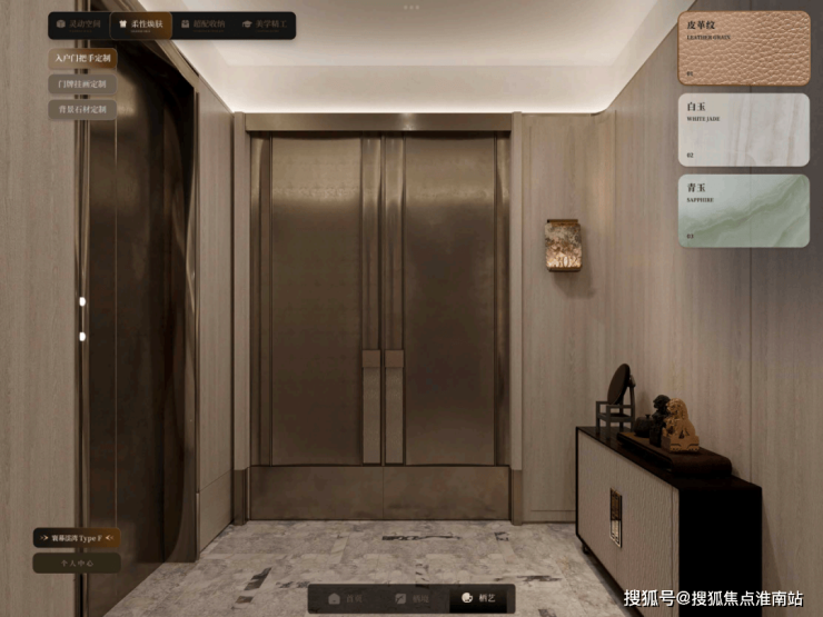 户型秉持“系统定制”为核心理念,从艺术家联名门把手到珍稀石材背景墙,肌理级的定制细节铭刻业主审美个性。