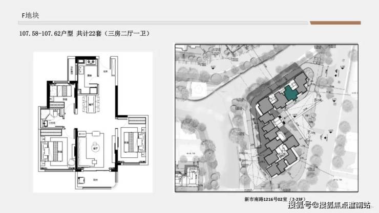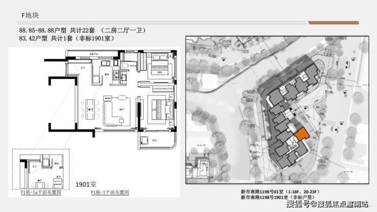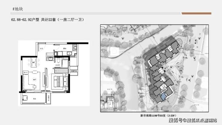 F地块1单元&3单元得房率约73.6-74.6%;