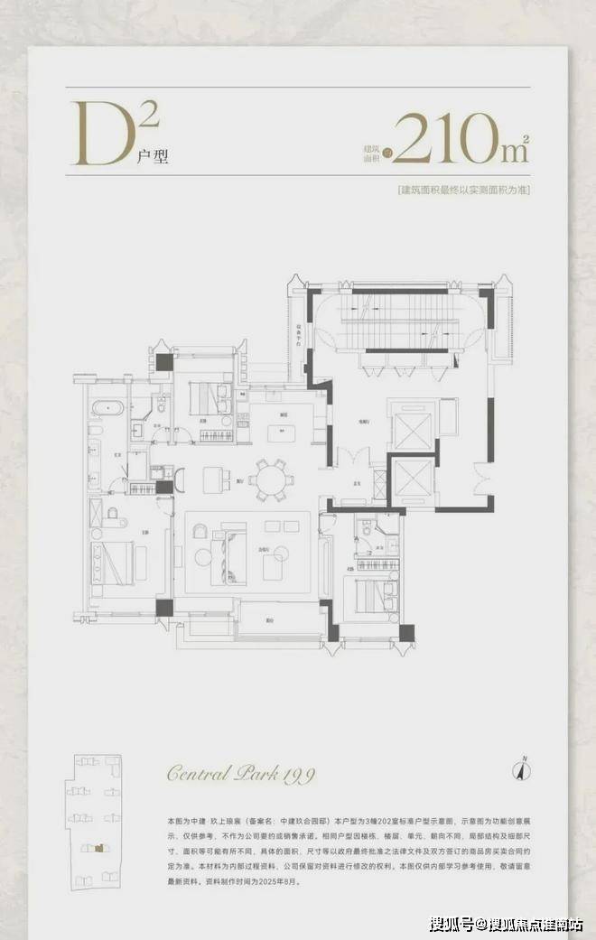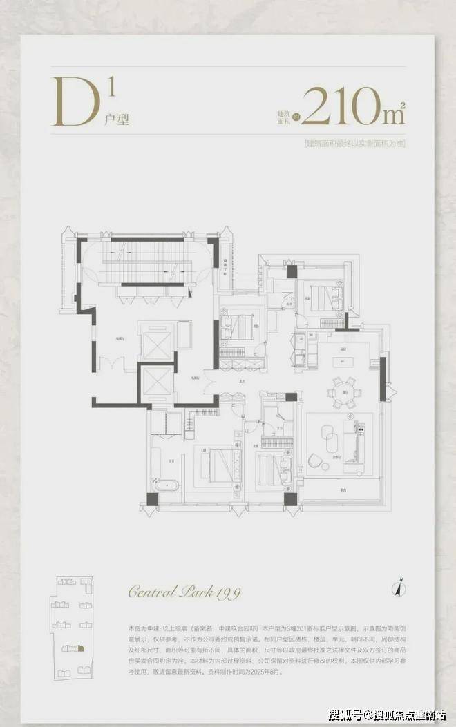 建面约210㎡,分为中间套与边套产品: