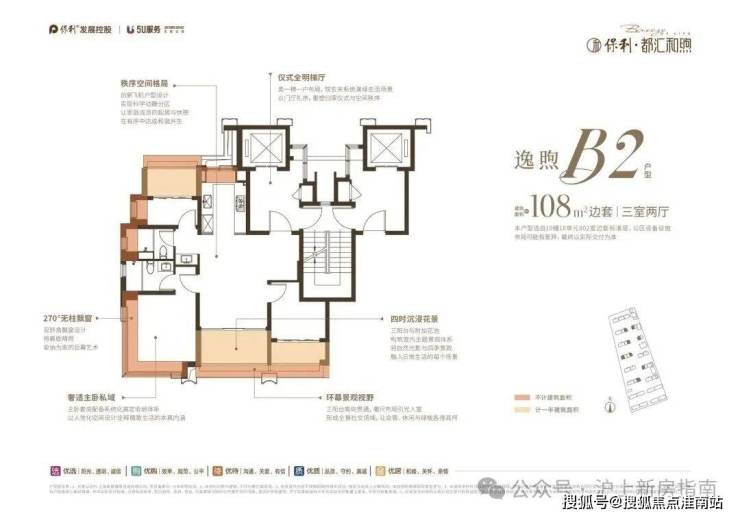 小高层类一梯一户、三阳台设计(部分户型) 、270°无柱飘窗(部分)