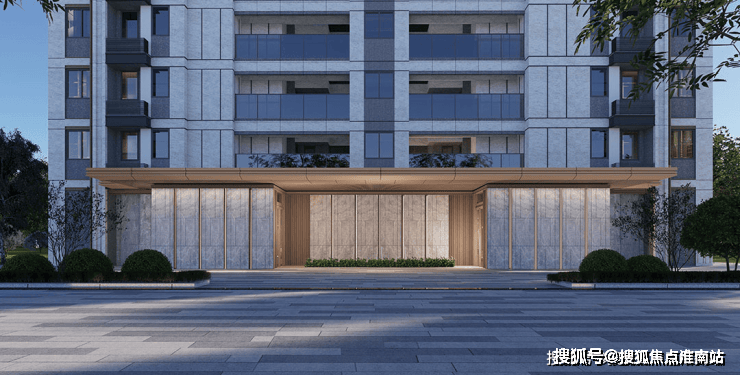 首层基座采用人造石材+铝板等装饰材料,增强建筑整体感和精致度;顶层外挑飘板使建筑立面更加清晰,层次感更丰富。