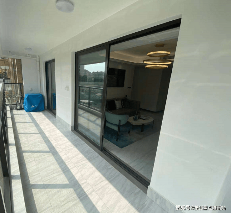 南向阳台开间约 7.4米 ,进深约 1.8米 ,超 13个㎡ 。笔者可以在这里品茶观景,享受微风吹拂;也可以开辟一片天地,静读一本好书。