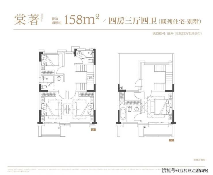 叠墅:叠墅一共四层,分为上/下叠,上叠建筑面积约139㎡,下叠建筑面积约142㎡。