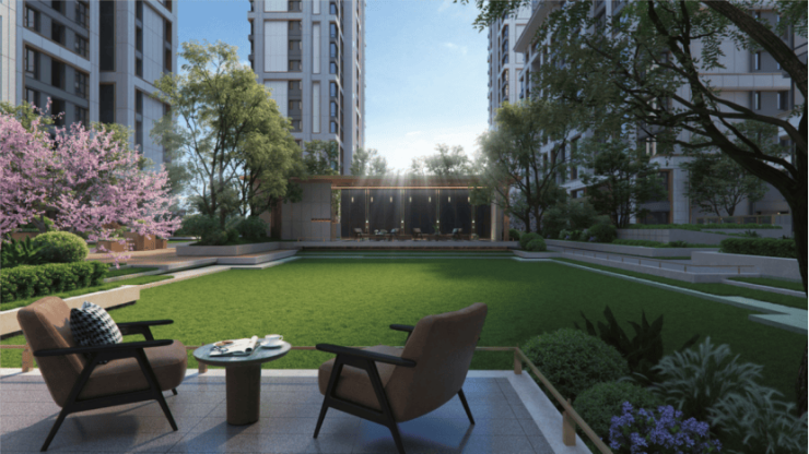 交付标准:国际一线品牌精装,配备大金中央空调、威能地暖、霍尼韦尔新风系统,智能马桶、定制橱柜等