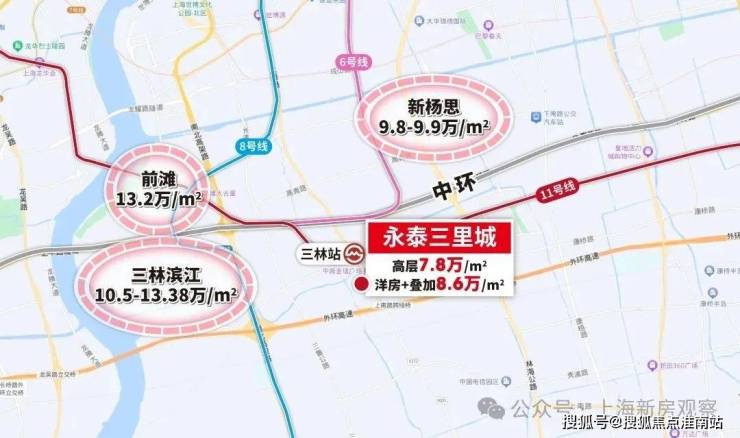 不难发现,同样咫尺中央活动区的永泰三里城性价比就凸显出来了!永泰三里城是11号线轨交红盘,1站直达前滩,2站直达徐汇滨江,近享中央活动区高浓度城市资源!更何况,永泰三里城高层均价仅约7.8万/㎡,比隔壁三林滨江低了近2.7万/㎡,这一价格真的太香了。