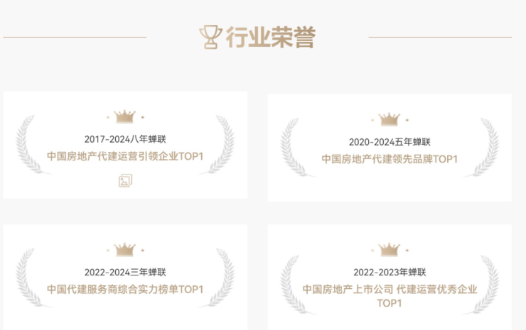 2017至2024年,连续8年蝉联中国房地产代建运营引领企业TOP1