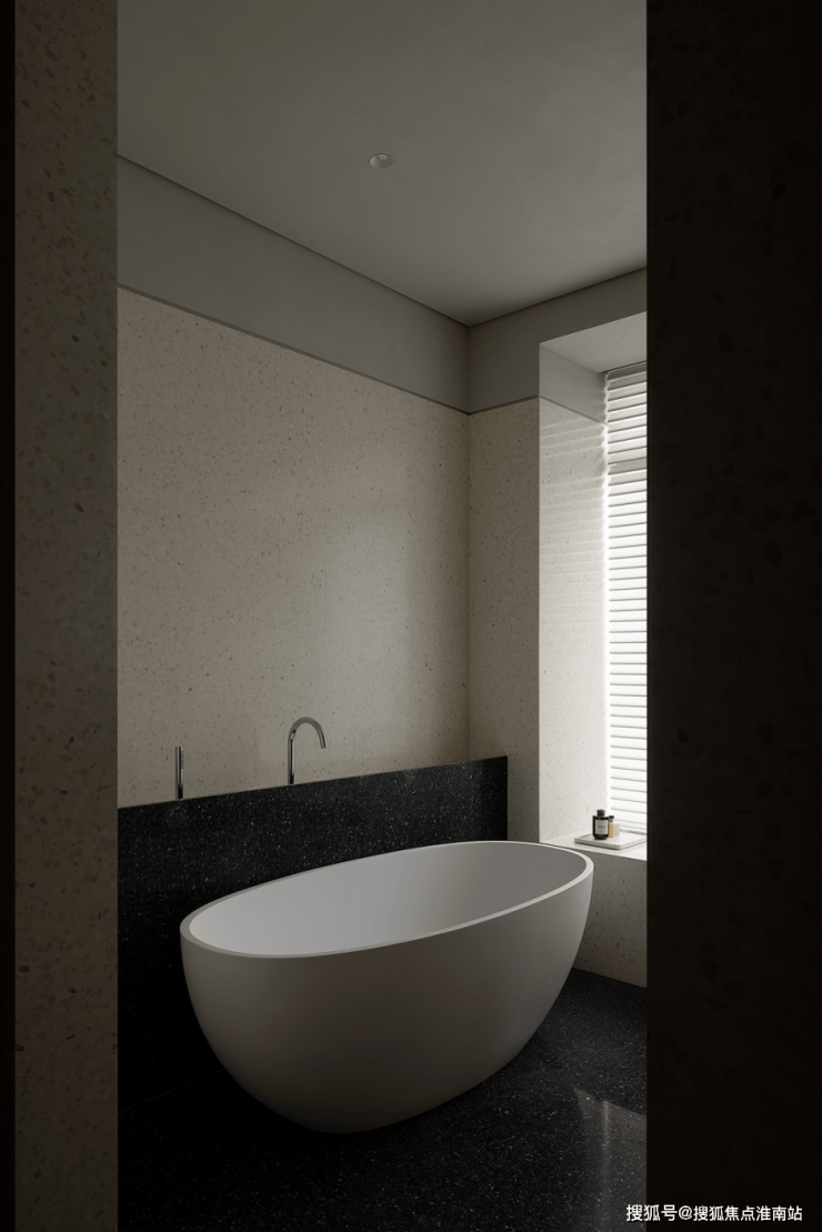 卫生间的圆柱设计,不仅带来了柔和而稳重的力量感,还与错位空间巧妙结合,再辅以现代美学的装饰手法,为日常动线增添了几分趣味与惊喜。