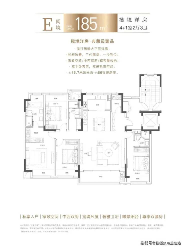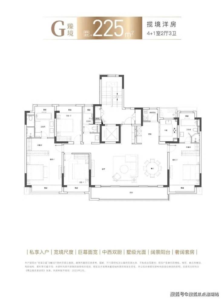 建面约205㎡洋房新品,央景楼座,俯瞰一园精粹。约20米南向五开间、约8.1米巨幕横厅、双奢适套房主卧、中西双厨,处处彰显豪阔领域。因市场罕有的宽境尺度、高阶的精工标准、纯粹低密的观景视野,成为本次加推的明星户型。