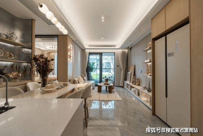 建面约99㎡的边套户型采用大横厅的设计,3+1开间朝南的设计,让这个户型的南向采光面以及尺度感变得十分惊人。