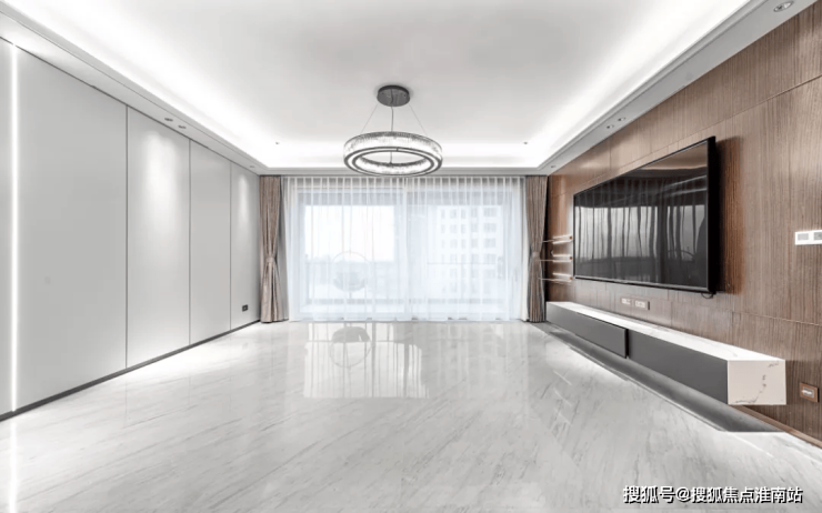 将近6米宽的大客厅,可以随便躺平2个半姚明,思聪同款价值50万的98寸电视放着都显小。