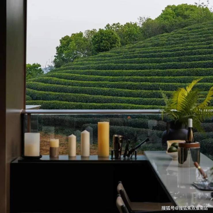西侧北侧茶山环抱推窗见景,东侧远景亦是茶山景观无建筑遮挡,满目翠绿的茶园推窗尽收眼底