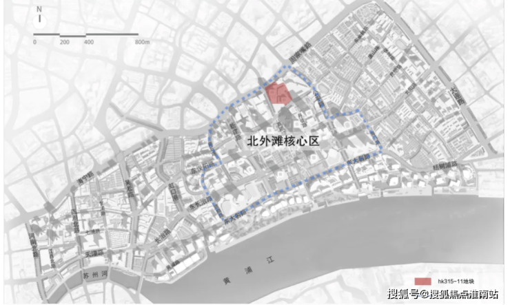 地块位于北外滩核心区,东至现状丹徒路,南至hk315-07地块和规划东余杭路,西至hk315-14地块,北至hk315-15地块和景泰大楼,与碧云北外滩直线距离仅约100米。