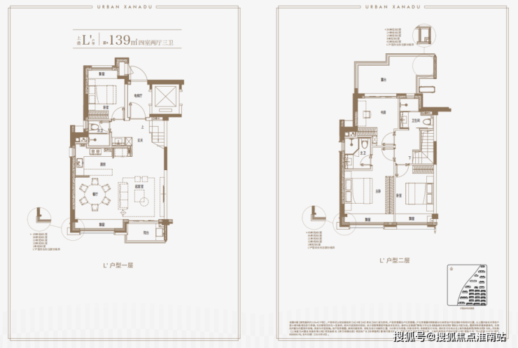 建面约139㎡上叠户型,三层是会客区,四层是居住区,阳台+露台+多个飘窗设计,附加空间非常大,在别墅类产品中实属罕见!