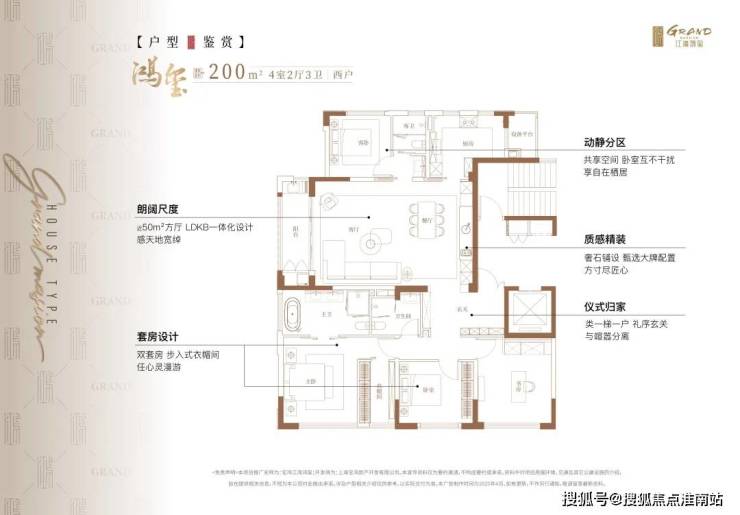 户型设计上,类一梯一户,方厅近50㎡,主卧超级套房。
