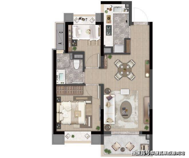 B户型建面约72㎡2房2厅1卫