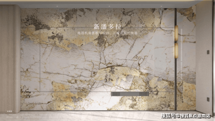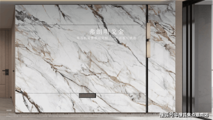 充分考虑业主的个性化需求,在电视背景板提供了新潘多拉、云中翡翠、弗朗明戈金三种结晶釉面岩板选择,成本更高,施工难度也更大.