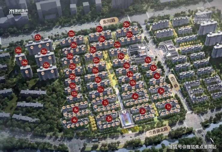 洋房分布在东西两侧,东侧洋房可俯瞰黄浦江江景及滨水绿地,西侧洋房可览兰香湖湖景。