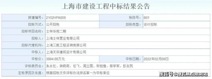 2022年2月8日,上海天华建筑设计有限公司以3994.65万元中标士林华苑二期地块设计项目!