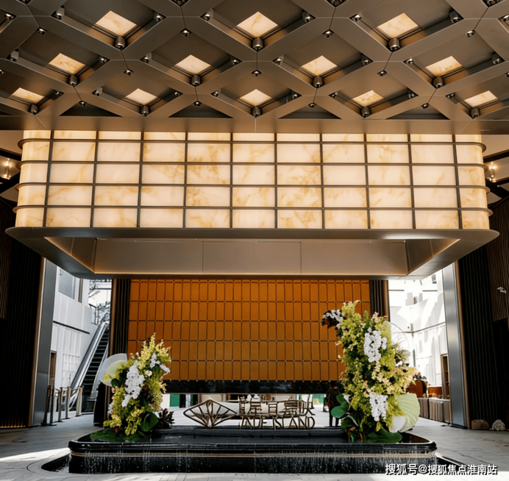 社区主入口以伦敦梅费尔瑰丽酒店为设计原型,打造了气势恢宏的酒店式门仪,200米宽的酒店式门仪,近7米高檐口,16根柱廊排成序列;点睛之笔「明瓦灯笼」,近10米宽、6米高的巨型光影装置,金色雨棚与玉石纹理透光材质巧妙衔接,下方是粼粼水景,光影流转间,直接点亮归家的仪式感。