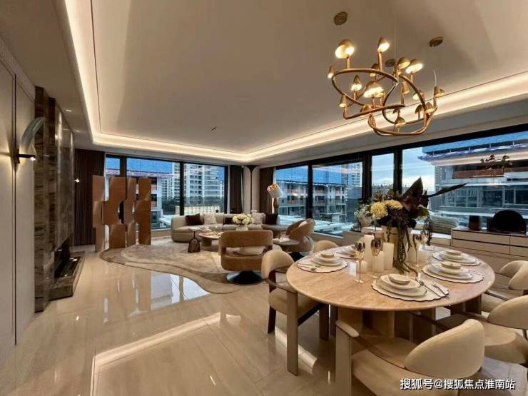 在立面塑造上,建筑呈现出公建化的精致与简约。线条干净利落,大面积玻璃幕墙与高级金属、石材材质结合,勾勒出现代而典雅的轮廓。立面的设计不仅关乎美学,更服务于生活,通过优化的窗墙比,将板上的花园盛景与远方的城市风光最大限度地引入室内。