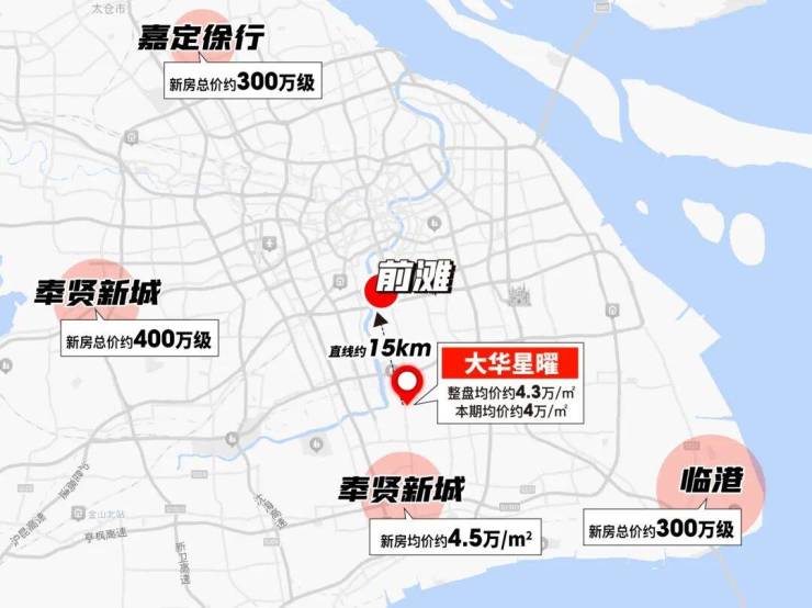 一些像奉贤新城、青浦新城、徐行这类靠近上海边缘的区域,其新房的均价也要在约4.5万/㎡左右,百平米3房怎么都要约450万级的价格了。