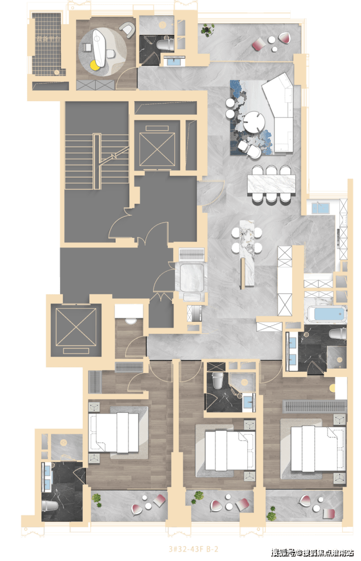 建面约193、237㎡为类一梯一户设计,拥独立门厅;建面约303㎡标配2梯1户、私享梯厅,纯粹的大平层圈层!