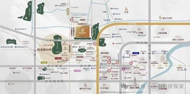 26号线: 中环超级大环线(规划中),嫁接15号线古浪路站以及11号线祁连山路,通车之后从本项目可达中环各个板块商圈,未来项目会实现三轨环绕轨道交通路网。