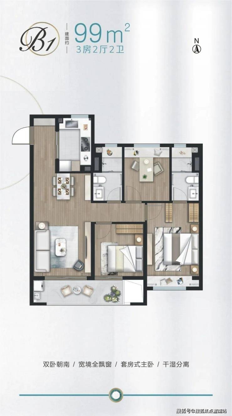 建面约99㎡3房,双开间朝南,陆家嘴锦绣澜湾售楼处电话:400-9966-224 双联观景阳台,具有良好的采光、通风。LDK设计,增强互动交流。套房式主卧,步入式衣帽间,兼具舒适性和私密性。