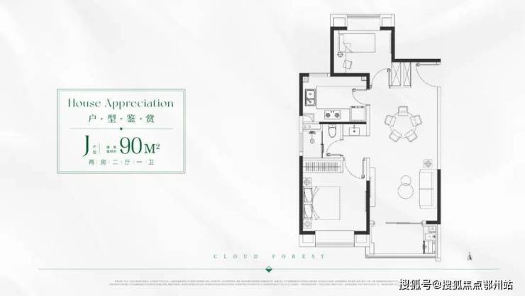 J/K户型 建面约90㎡2房