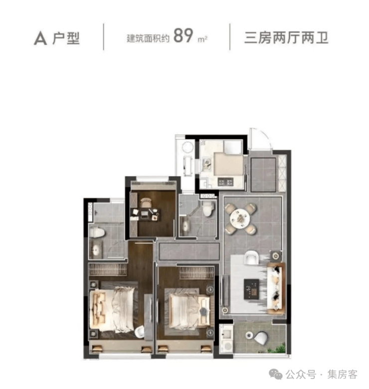 户型方面,既有建筑面积约99方的三房两卫大边套户型,也有更加难得的建筑面积约89方三房两卫两厅。每一个户型产品的设计,都反复考量滨奥南人居生活的习惯。以不同的居住尺度,匹配不同的人群。3000元的装标中,有中央空调(海尔)、厨房三大件(方太的油烟机、燃气灶、消毒柜)等,配置还是比较齐全的。