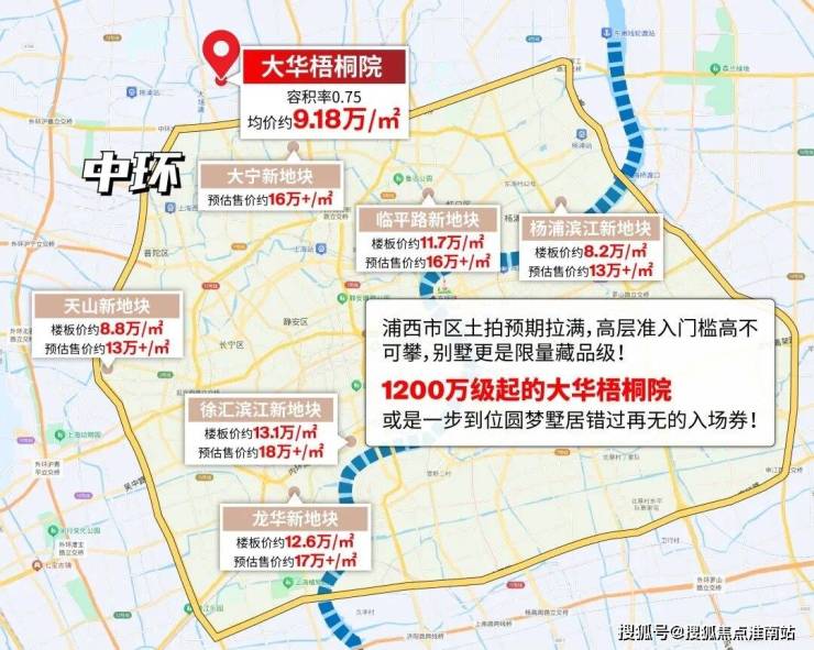 而从整个中环沿线现有格局来看,价格约10万+/㎡项目基本售罄、当下约11万+/㎡已成为底线,约12万+/㎡是常态。