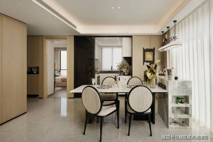 开放式的厨房,还预留了岛台,延伸了U型台面,让烹饪中心演变为社交场域,不仅颜值高,互动性也很强。
