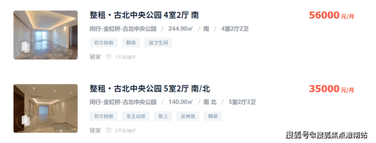 另外,于短期不住的客户,可以立马出租,租赁冲抵房贷!我给大家参考一下附近租金,我选择了和古北99面积, 较接近古北中央公园大户型:
