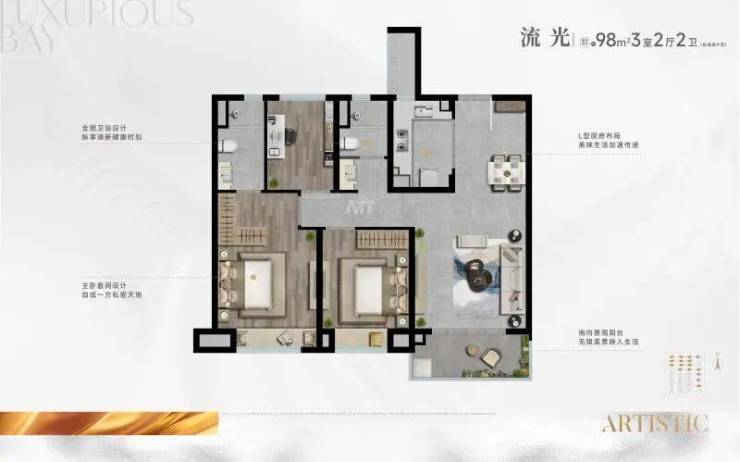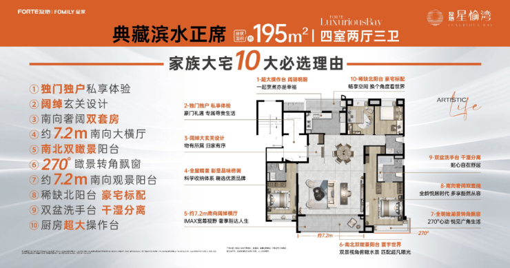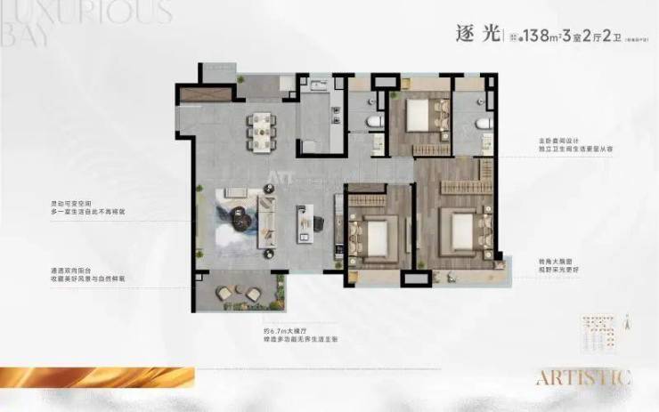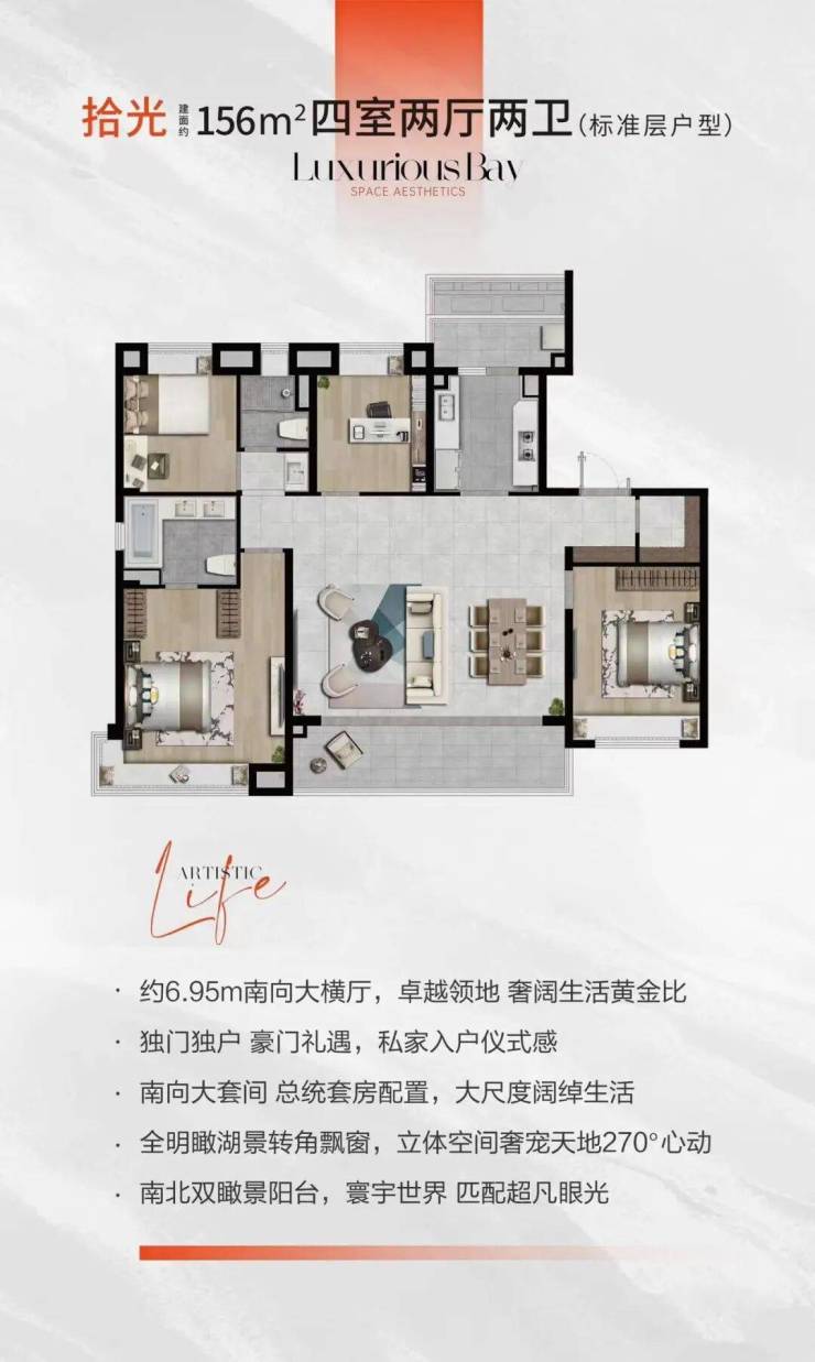 以7.6m大横厅,深U型厨房以及奢阔休闲阳台,彰显高阶气度与格局,独立入户的设计互不打扰,静享私密,南向大横厅,让阳光、风景与生活常伴。再次以奢阔美学艺术生活,敬献金山大人物。