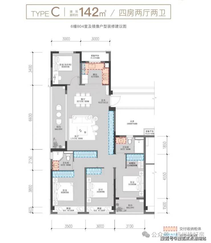 建面约142㎡改善大四房,采用大尺度边厅设计,进一步放大了阳光平权的优势;270°环景视野,提升居家无界的生活质感;南向三卧室+约6.6米边厅观景大阳台,与客餐厅无缝对接,让家人在餐饮娱乐之余,观赏窗外美景,尽揽四季风景。