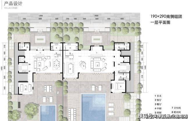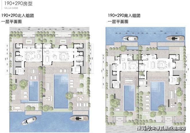 北入户的190+290房型,一层朝南直面庭院和泳池,如果配上整扇的落地玻璃移门......