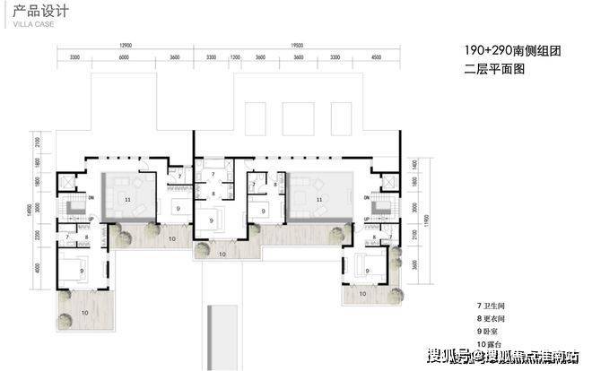 二层都是套房设计+露台+客厅挑空,190的二层是双套房、290的二层是三套房。