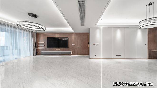 将近6米宽的大客厅,可以随便躺平2个半姚明,思聪同款价值50万的98寸电视放着都显小。