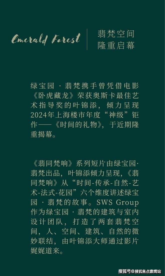 上海浦东康桥绿宝园翡梵售楼处电话: 400-8567-334✔✔绿宝园·翡梵出品,叶锦添倾力呈现《翡同梵响》