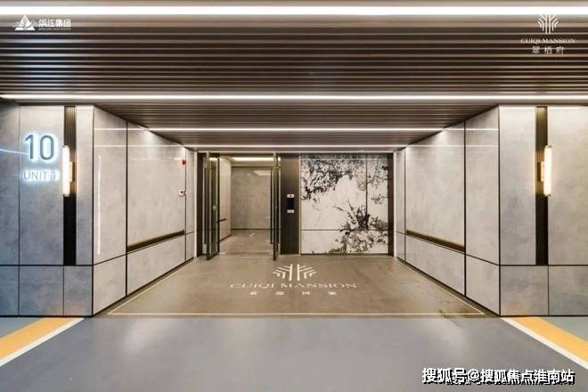 地下车库也让你眼见为实,地面划线是灰色、灰绿与橘黄的色调搭配,给人一种宁静感。车库入户大厅的界面感十足,一幅岩板抽象画,搭配暗金色的推门,折中的秩序感油然而生。看完翠栖府的实景样板区,一种久违的惊艳之感,自然而然地在心中震荡。