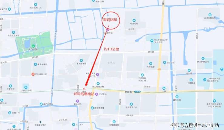 项目离16号线惠南站直线距离 约1.3km,步行也差不多1.3km。