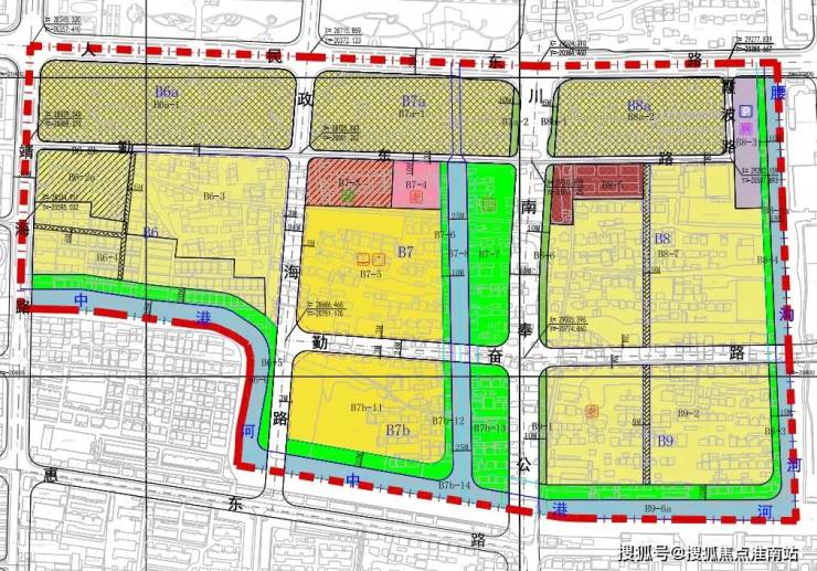 南区在16号线以南,东至腰沟河、南至中港河、西至靖海路、北至人民东路。