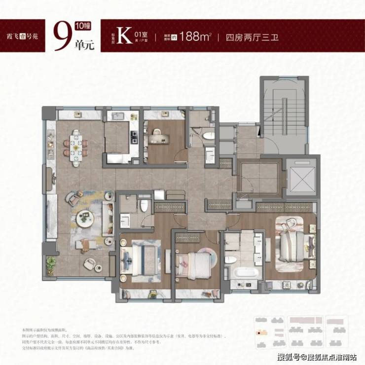户型方面,项目推出建面约98-122㎡3房及141-188㎡4房。