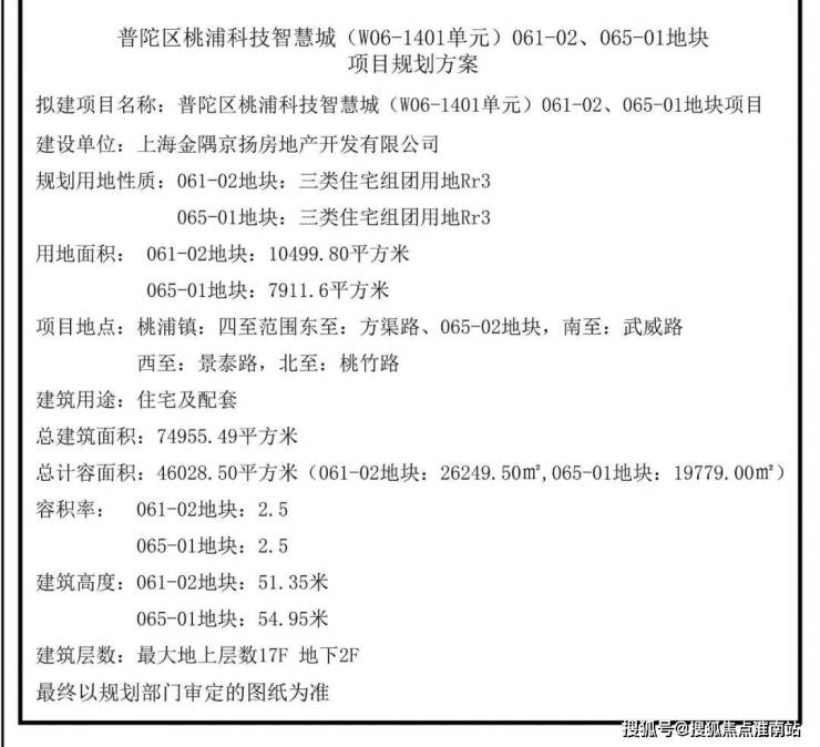 2023年12月,金隅以22.77亿元竞得普陀区桃浦科技智慧城(W06-1401单元)061-02、065-01地块,出让面积18411.4㎡,容积率2.5,房地联动价8.55万/㎡。