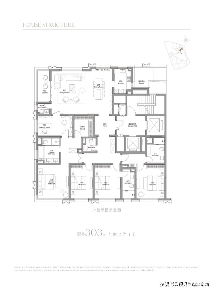 超高层大平层:主力建面约196-600㎡,包含196㎡3房(复式)、217㎡3房、236㎡4房、275㎡4房、280㎡5房、303㎡5房等户型,还有建面约95-96㎡的1-2居户型^。