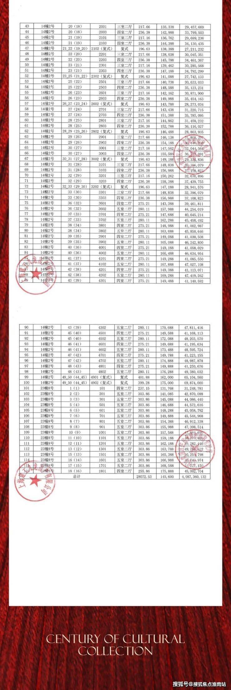 超高层大平层:均价约14.5万/㎡-14.56万/㎡,总价约2350万起,其中196㎡3房(复式)总价约2600-3000万,217㎡3房总价约3100-3300万,236㎡4房总价约3580-3750万,275㎡4房总价约3950-4380万,280㎡5房总价约4400-4950万,303㎡5房总价约4280-5200万^。