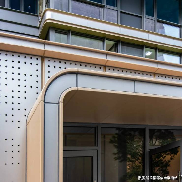 项目外立面采用大面积玻璃+铝板,勾勒出“极窄边框”视觉效果。